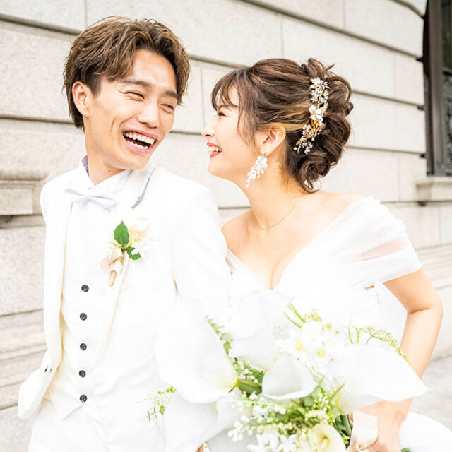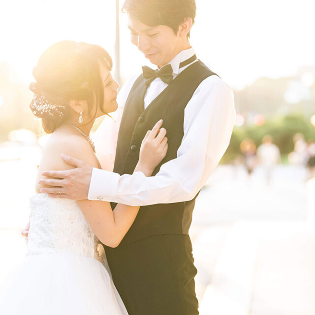 純白のウエディングドレスとスタイリッシュなタキシードで撮影するのがお勧めです。